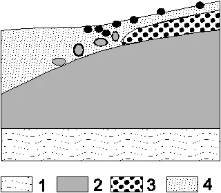 Ein Schema der prinzipiellen geologische Schichtenfolge ohne Berücksichtigung der tertiären Verwitterung und Sedimentation.